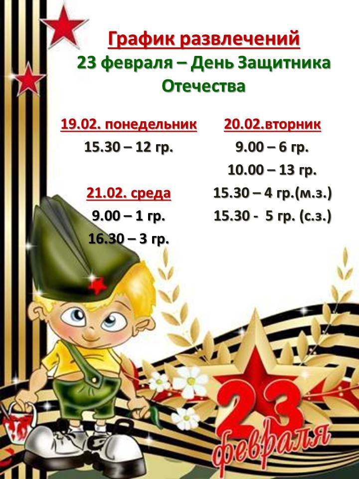 По ссылке ниже вы сможете скачать график развлечений на 23 февраля.