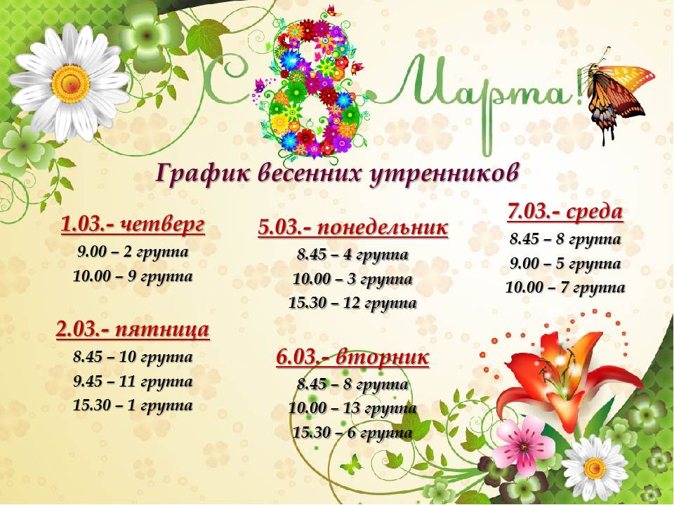 Уважаемые родители, по ссылке ниже вы сможете скачать график весенних утренников.