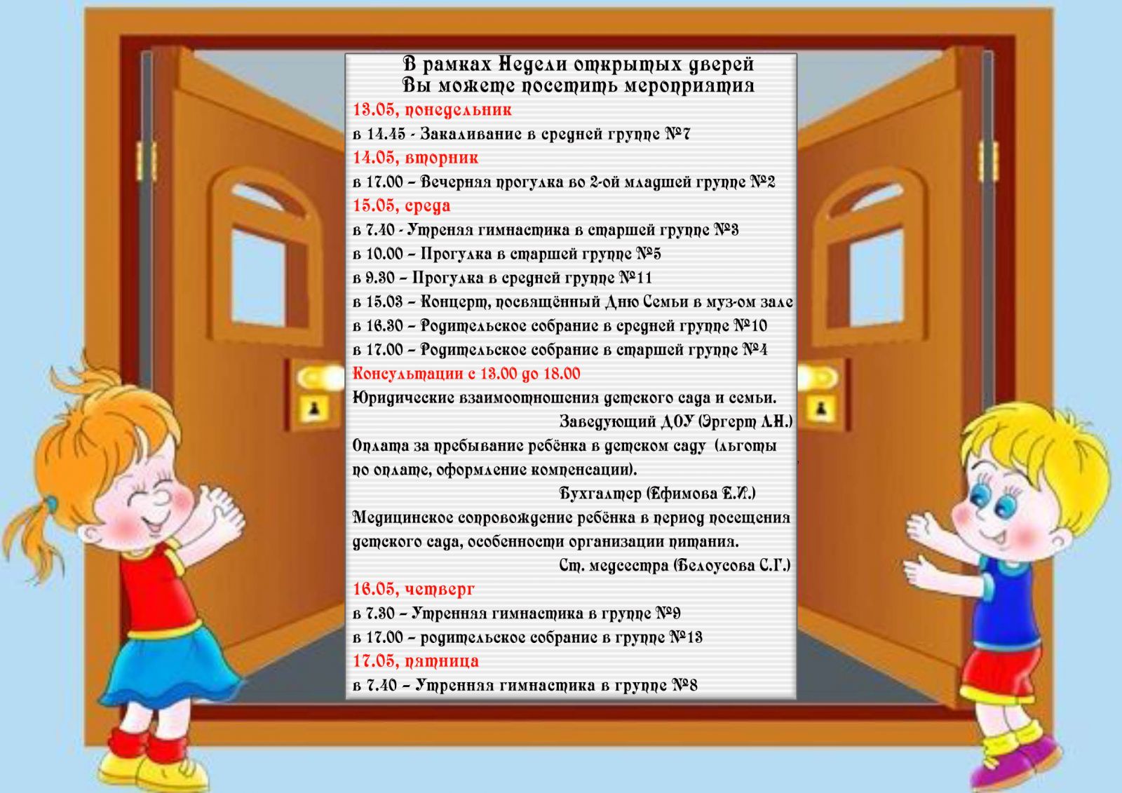 Опубликовано: 08.05.2019Уважаемые родители, по ссылке ниже вы сможете скачать график мероприятии Недели открытых дверей