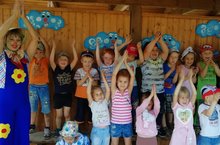 Яркая развлекательная программа «Калейдоскоп веселых игр» для воспитанников старших возрастных групп организована воспитателем по обучению татарскому и русскому языкам Садыковой Л.Ф. совместно со специалистами Дома культуры с. Б. Афанасово. На фото: воспитанники и клоун Пряник (Садыкова Л.Ф.).