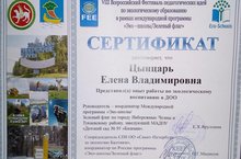 В мае старший воспитатель Цынцарь Е.В. приняла участие в VIII Всероссийском Фестивале педагогических идей по экологическому образованию в рамках международной программы «Эко-школы/Зеленый флаг» (г. Нижнекамск, г. Набережные Челны), где представила опыт работы по экологическому воспитанию в ДОО.