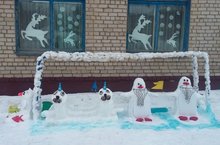 Коллектив детского сада, совместно с родителями воспитанников построили для детей снежный городок "Под сиянием полярной звезды". Автор проекта воспитатель Киляева Н.А.