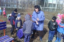В рамках проведения акции "Доброе дело родному селу " воспитанники детского сада,вместе с воспитателем Шемеловой Ю.Н. вышли на уборку территории.