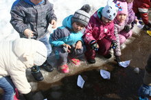 Педагоги Шемелова Ю.Н., Ахметвалиева В.В. с воспитанниками средней и старшей групп работали в мастерских по изготовлению бумажных корабликов , которые были "спущены" на воду.