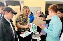 7 апреля, 8а встречался с португальским художником,выпускником Лиссабонской школы искусств Кристианом Апостолом,в рамках работы по проекту"Пушкинская карта".Кристиан Апостол провел мастер-класс для ребят.Ребята учились фантазировать,придумывали образы,выражали свои чувства ,учились воспринимать различные события.Мастер-класс получился интересным,показал творчество ребят .В проведении мероприятия принимали участие группа"Твори добро"и Ольга Александровна.