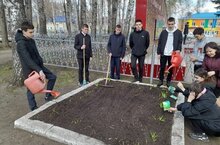Впереди главный праздник страны-День Победы. Члены отряда РДШ и Юнармии облагораживают территорию памятника воинам, погибшим в годы Великой Отечественной войны. Газоны засеяны декоративной травой, посажены цветы в клумбах. "Эко-весна" во имя Великой Победы!
