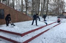 Учащиеся 4 Б класса очистили от снега территорию памятника воинам ВОВ.