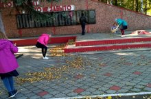 В течение учебного года учащиеся приводят в порядок территорию памятника павшим воинам.