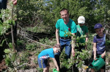 Директор Большеафанасовской школы Степанов Б. А., вместе с детьми принимает участие в Международной акции "Садпамяти2020". Посадка деревьев по улице Красной, села Большое Афанасово.