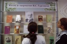 В рамках празднования 200-летия со дня рождения писателя подготовлена выставка "Жизнь и творчество И.С. Тургенева", а также провели обзор по произведениям великого классика русской литературы.