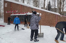 Ученики 5 класса под руководством учителя ОБЖ Кузнецова А.А. очистили памятник от снега.