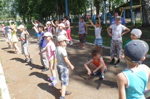 Танцевальный флэш – моб был организован Тимофеевой Э. Р., воспитателем пришкольного лагеря. Ей помогали вожатые лагеря. Он был посвящен Дню защиты детей. Под веселую музыку ребята повторяли движения за своими вожатыми. Море радости и позитива получили воспитанники пришкольного лагеря.