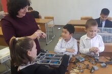 Точка роста. Занятие в объединении под руководством Е.М.Гараевой. Будущие специалисты отечественной промышленности, обучающиеся начальной школы выполняют задания по робототехнике