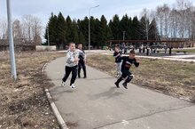 Но так как мы далеко живем от Байконура, мы решили провести свою мини-эстафету на стадионе. -