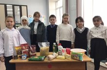 В рамках акции «Бесплатный магазин» учащиеся 6Б приготовили коробку для пожилых людей.