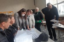 "Избиратели" заполнили настоящий бюллетень, "избирательная комиссия" пересчитала "голоса" и заполнила протокол.