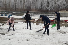 Сегодня в нашей школе прошел субботник. Ученики, учителя и сотрудники школы наводили порядок на территории нашего учебного заведения.