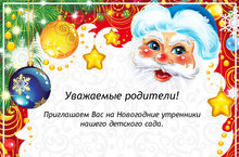 Новый год - самый любимый, веселый праздник для детей и взрослых. Этот добрый сказочный праздник ждут в каждом доме, в каждой семье. Новый год - всегда ожидание чуда, волшебных приключений и удивительных перемен. В это время по-особому верится, что счастье и удача непременно придут к каждому из нас. Уважаемые родители! Приглашаем Вас на новогодние утренники в нашем детском саду. Новогодняя ёлка и сказочные герои ждут вас!
