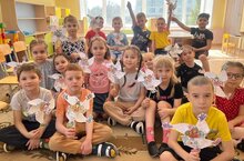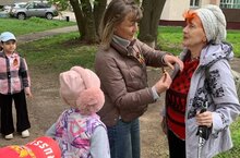Преддверии великого праздника Дня Победы, наши дошколята раздали жителям микрорайона бутоньерки "Гвоздика с георгиевской лентой", выполненные своими руками, со словами благодарности за мирное небо над головой, за счастливое детство.
