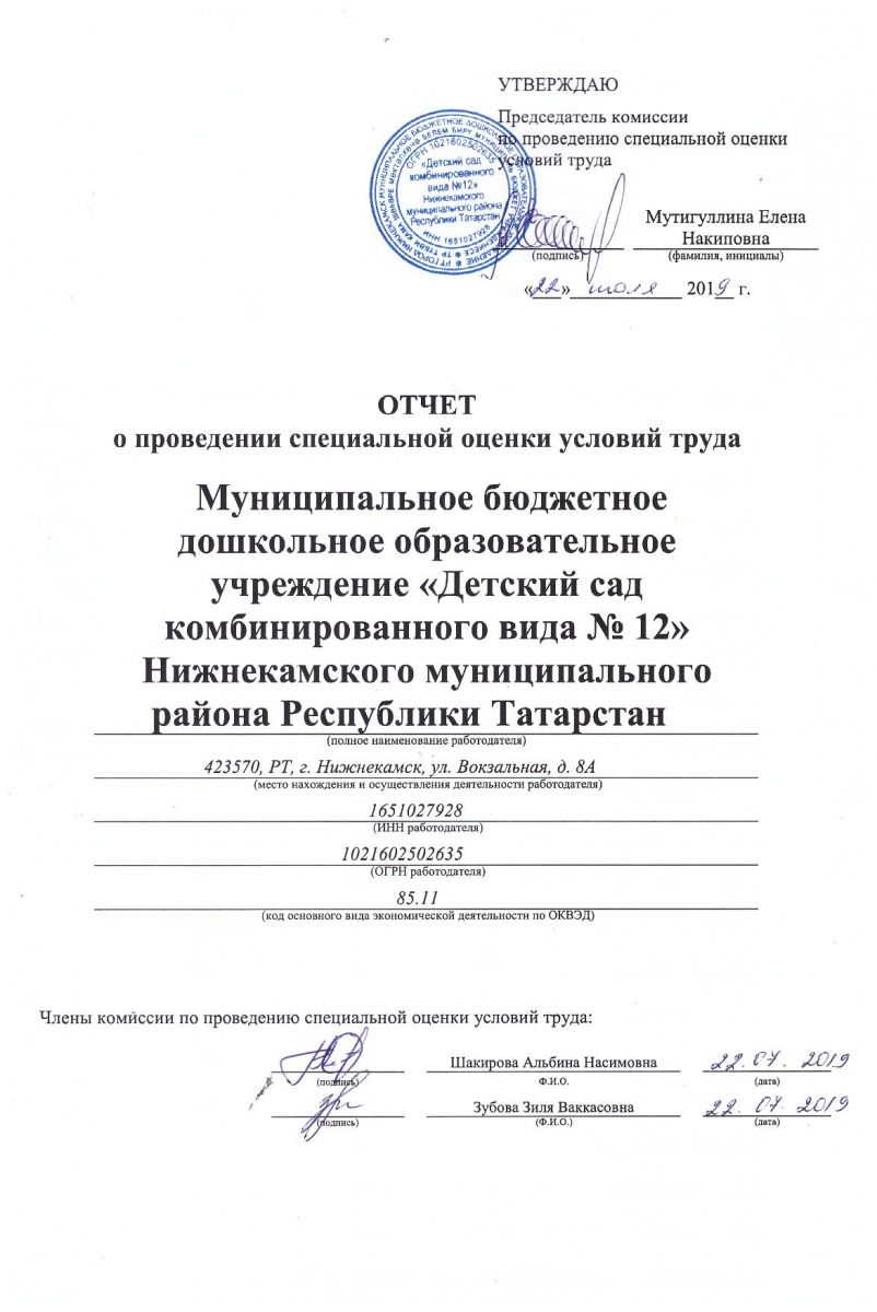 Отчет о проведении СОУТ-2019 год
