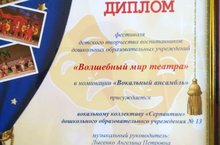 Наша воспитанница Буканина Виктория награждена Дипломом 1 степени в номинации "Соло" в Региональном конкурсе "Семь веселых нот" за песни "Милый край родной!" и "Поцелую бабушку"
