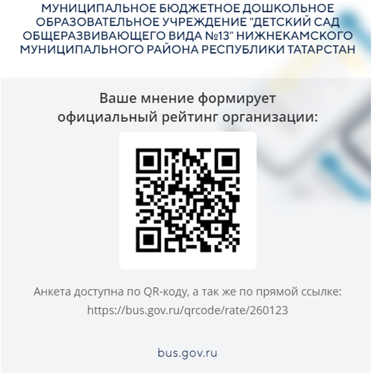 | Короткое название: | МБДОУ "Детский сад общеразвивающего вида № 13" НМР РТ |