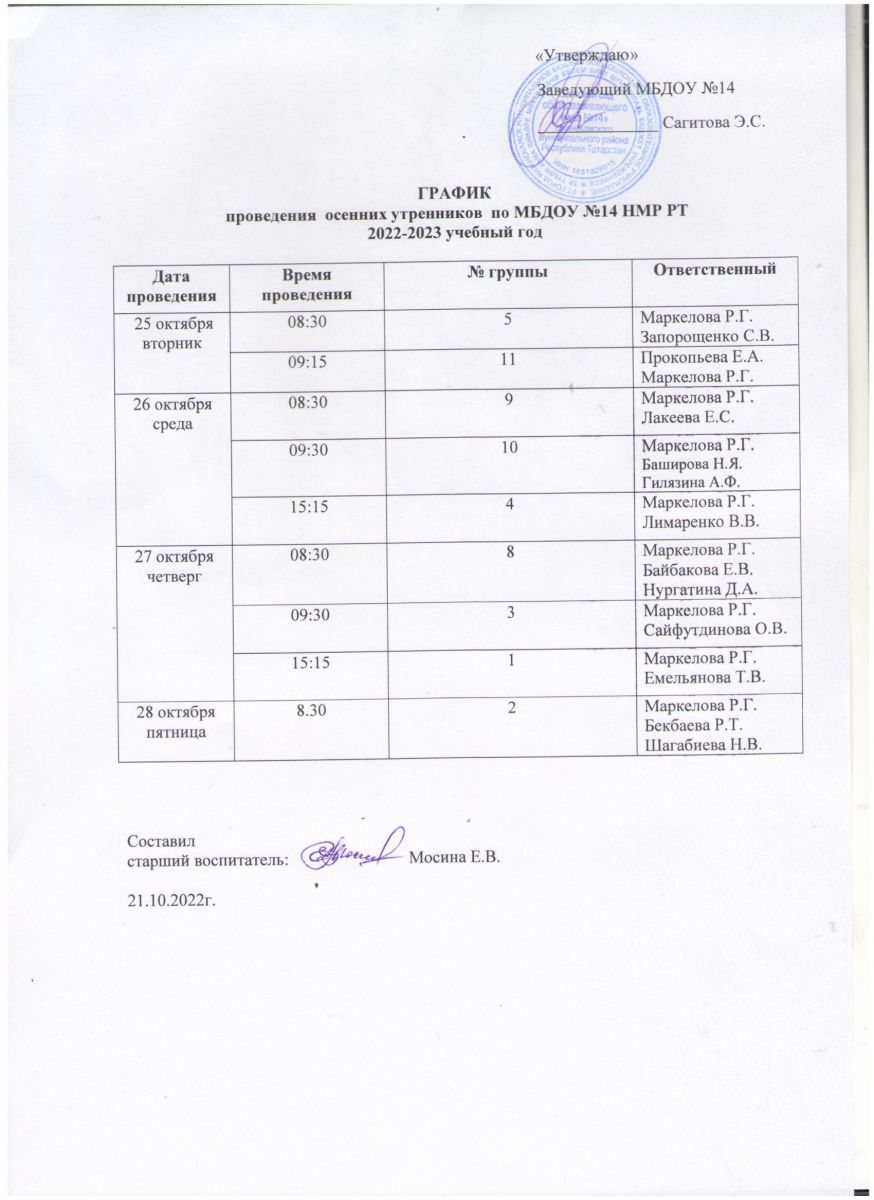"ГРАФИК ОСЕННИХ УТРЕННИКОВ"