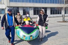 Сегодня наши педагоги Харисова Г.Р. и Юртова М.В. устроили для детей, пришедших на праздник Навруз к Дому народного творчества, интересный и яркий интерактив – полёт на самолёте и перетягивание....нет, нет, не каната, перетягивание оооогромной сосиски!