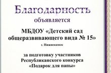 Муниципальное автономное дошкольное образовательное учреждение «Детский сад общеразвивающего вида №15» Нижнекамского муниципального района Республики Татарстан - новости