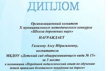 Старший воспитатель Газизова Алсу Ибрагимовна заняла 3 место в номинации "Передовой педагогический опыт по обучению детей правилам безопасного поведения на дороге". Поздравляем Алсу Ибрагимовна и желаем Вам дальнейших успехов!