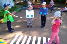 Сегодня с целью профилактики детского дорожно-транспортного травматизма в ДОУ организовано практическое занятие с детьми в игровой форме