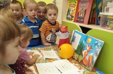 В рамках недели русской культуры малыши второй группы раннего возраста №4 продолжают знакомится с героями русских народных сказок. Сказочные герои приходят в гости к ребятам в играх, в литературных чтениях, в инсценировках, в театральных представлениях. А любимого героя, колобка, хочется изобразить на рисунке и подарить другу.