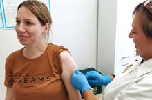 Формируем коллективный иммунитет: сегодня сотрудники детского сада сделали прививку от гриппа, решив воспользоваться хорошей погодой и услугой специальной выездной бригады для вакцинирования работников коллектива.