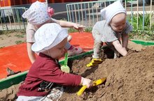 В песочнице отлично тренируется мелкая моторика рук и развиваются тактильные ощущения.Малыши постоянно узнают что-то новое.Также игры с песком являются методом детской самотерапии.Наши малышки первой группы раннего возраста 2 любят игры с песком.