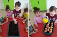 Воспитанники детского сада совместно с педагогами организовали посадку лука. Ребята узнали о том, что в зелёных стрелках лука содержится большое количество витамина С. Для роста лука необходимы свет, тепло и вода