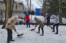 Сотрудники детского сада дружно вышли на субботник по раскидыванию снега на прилегающей к дошкольному учреждению территории -