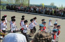 Воспитанники подготовительных групп детского сада в форме казаков приняли участие в городском параде, посвященном 69 годовщине Великой Отечественной войне. Под бой барабанов и поздравления ветеранам воспитанники детских садов открыли парад.