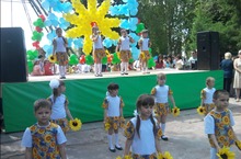 Дети подготовительных к школе групп приняли участие в поздравлении всех детей города Нижнекамска на площадке "Парка аттракционов" с концертными номерами.
