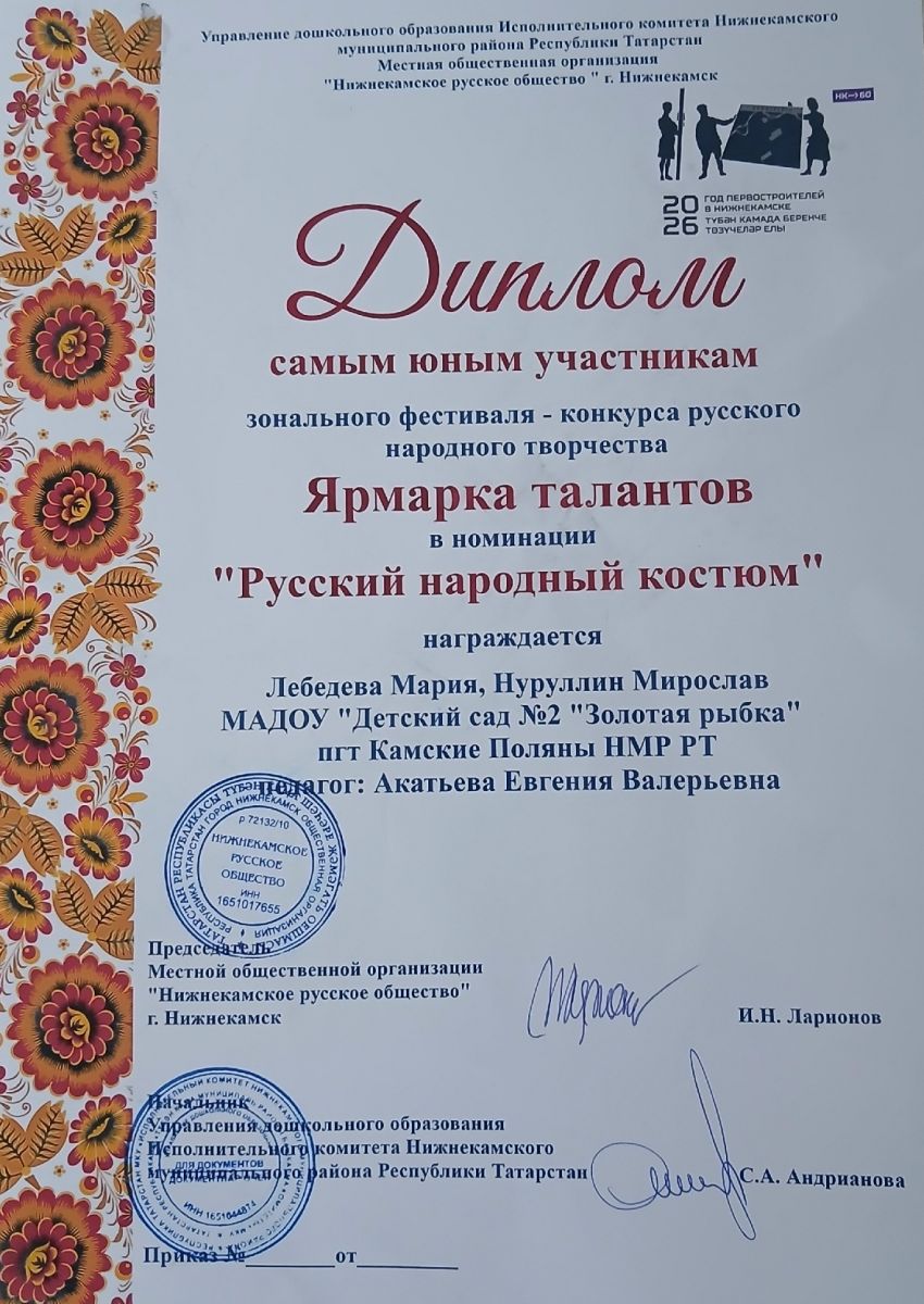 Муниципальное автономное дошкольное образовательное учреждение "Детский сад №2 "Золотая рыбка" пгт Камские Поляны Нижнекамского муниципального района Республики Татарстан