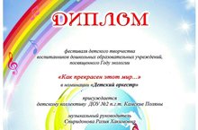Фестиваль детского творчества воспитанников ДОУ, посвященный Году экологии «Как прекрасен этот мир…». Музыкальный руководитель Спиридонова Р.Х. награждена Дипломом в номинации «Детский оркестр» Главы НМР, Мэра г.Нижнекамска А.Р. Метшина 01.06.2017