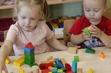 Воспитанники группы раннего возраста №2 "Пчёлки" с удовольствием играют с кубиками, строя свои первые постройки.