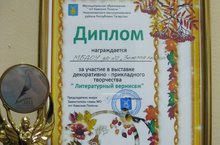 Диплом - за участие в выставке декоративно - прикладного творчества "Литературный вернисаж" 24.11.2015