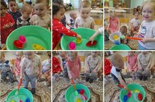 Сегодня мы играли в игры с водой, запускали кораблики, определяли тонет - не тонет, затем с помощью сачка каждый ребенок пытался выловить кораблик. Игра получилась интересной, забавной и познавательной.