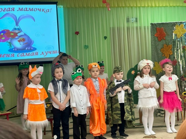 " МАМА - первое слово, главное слово в каждой судьбе..." - этой песней начался праздник ко Дню Матери. Затем дети подготовительной к школе группы №6 исполнили для мам бумажный оркестр. Также в исполнении мальчиков на диатонических колокольчиках прозвучала Баллада для Аделины. А девочки, задорно пританцовывая, спели песню "Умница моя". Старшие группы №7 и №9 также проявили свою любовь к маме нежной песней, стихами и играми. 7 группа проявила себя театрально, показав сценку. Очень был к месту видеоролик с татарской песней "Онытмагыз" (не забывайте родителей). Завершился праздник вручением подарков мамам, сделанных с любовью их детьми.