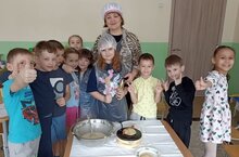 В начале проведения мастер- класса Гулюса Расфаровна актуализировала с ребятами знания о том, откуда берется мука, и как готовится тесто. Затем повторили правила техники безопасности и гигиены и приступили к подготовке всего необходимого инвентаря. Приготовили тесто для блинчиков и приступили к их приготовлению. Каждый ребенок имел возможность испечь для себя блинчик.
