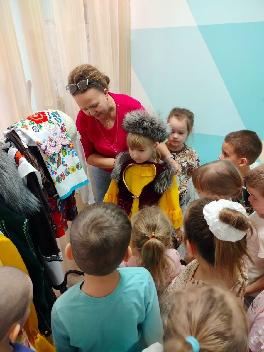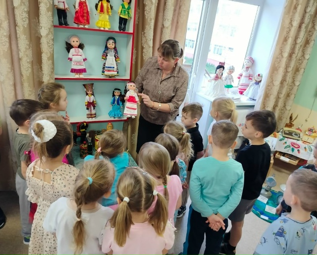 Цель – сформировать у детей первичные представления об основах культуры своего народа и вызвать интерес к ней. Дети средней группы познакомились с национальными костюмами русского и татарского народа. Посетили музей, где рассматривали и знакомились с куклами народов Поволжья, поиграли в русскую народную игру "Ручеек" и татарскую игру "Тюбетейка".