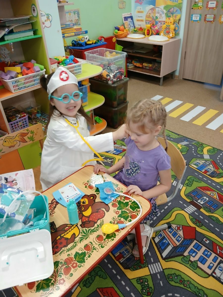 С удовольствием играли в сюжетно-ролевую игру «Больница», где доктор — добрый и заботливый человек.