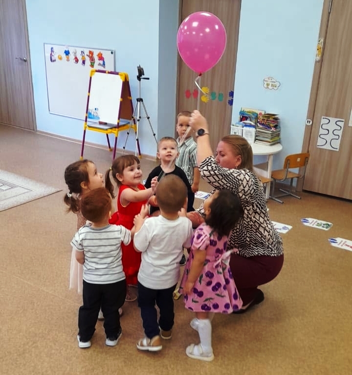 Сегодня к ребятами на занятие прилетал волшебный шар, с письмом - приглашением от бабушки - Хохотушки. Ребята отправились на паровозике в гости. Где с бабушкой -Хохотушкой пекли оладьи, читали стихи и потешки, делали дыхательную, артикуляционную и пальчиковую гимнастику.