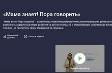 «Мама знает! Пора говорить»- онлайн курс, позволяющий родителям, воспитывающим детей раннего возраста, не только самостоятельно распознать задержку речевого развития на ранних этапах, но и стимулировать нормативное речевое развитие ребенка, а в сложных случаях - не пропустить сроки обращения за помощью. https://stepik.org/course/210767/promo