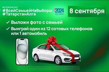 8 сентября, в день проведения выборов депутатов Госсовета РТ, в республике пройдет фотоконкурс #ТатарстанАлга #ВсейСемьейНаВыборы. По его итогам можно выиграть автомобиль или один из 12 сотовых телефонов